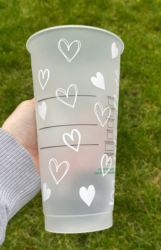 Personalised White Hearts Cold Cup